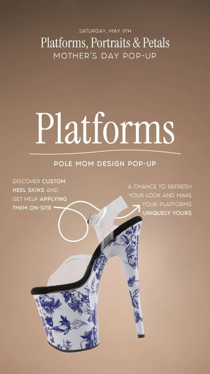 Pole Mom Design will be joining us to sell and help install her skins on your favorite shoes. Give your new shoes some protection or give your old favorites a refresh!