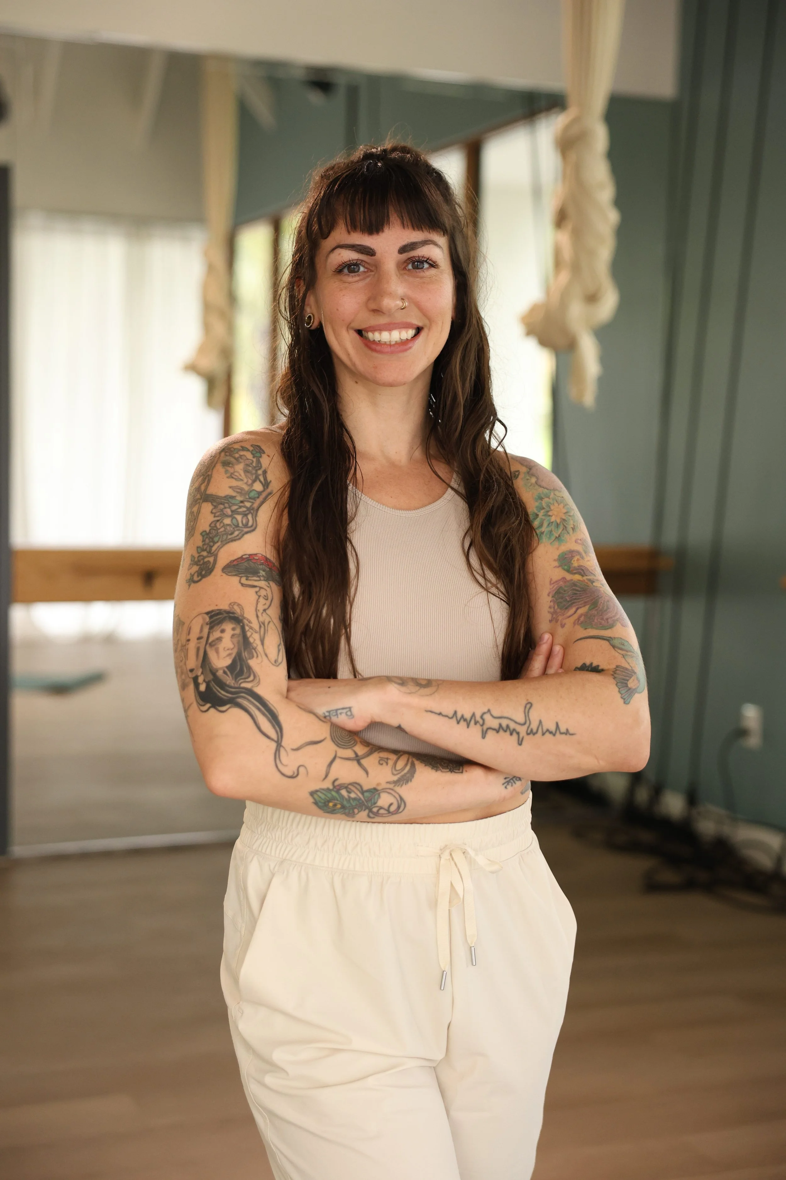 Cassandra or Cassie is from Cleveland, Ohio, but has been a OC local for over a decade. She is an avid learner. A classically trained artistic competitive gymnast, and Seeker of Knowledge, with 30 Years of Gymnastics Experience, 10 Years of Aerial Study + 7 years Teaching Silks & Hammock, 500hr Yoga Teacher & Licensed Massage Therapist of 14 Years. She has competed in and won many Gymnastics Meets Regionally as well as competed in her first Aerial Competition in November of 2024 in Intermediate Aerial Silks which she won Gold. Outside of teaching you can find her training silks or ropes, traveling, hosting retreats, learning more about her niche interests or snuggling her cat & skating with her husband. Movement & Performance Art have always been methods of therapy for her since her Mom and Grandmother were ballerinas, but she didn’t officially discover aerial arts until she was gifted a Groupon at 24 years old- and the rest is history!